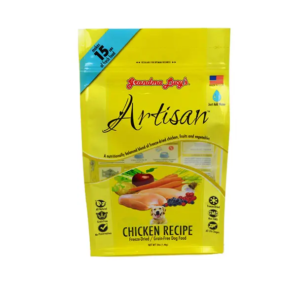 Customized Printed Quad Seal Pouch with Nylon Ziplock for Dog Pet Food Packaging