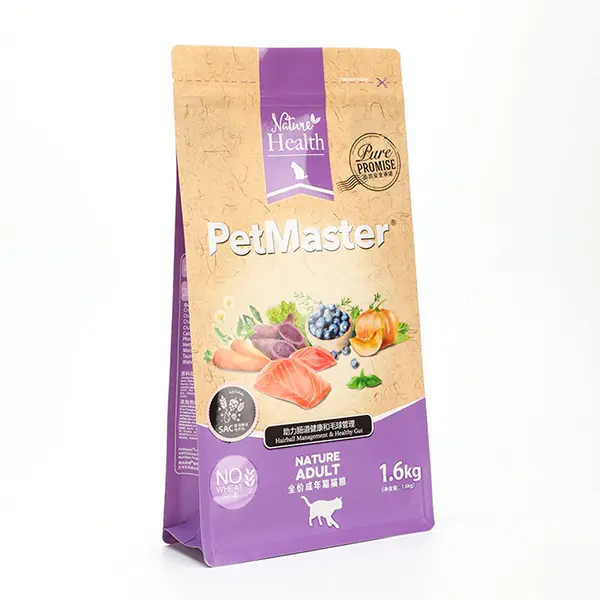 Bag Style: Flat bottom bags for pet food packaging Material Lamination: PET/AL/PE, PET/AL/PE, Customized