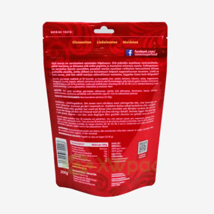 1/2LB 1LB,2LB fresh Fruit Packaging Protection Pouch Customized Stand up pouch with zipper, OEM &ODM manufacturer , with food grades certificates food packaging pouches, index Brief Introduction Stand-up pouch is a Flexible packaging that can stand upright on it. The bottom is used for display, storage and use. PACK MIC is often used in food packaging. the bottom of a Stand-up pouch with gussets can provide supporting. Show or use. They can be sealed with a zipper closure keep the bag as tight as possible. Showing a beautiful appearance is one of the advantages of self-supporting pouches. It can display your products well and help increase sales. For products that can be used once, the zipper-free stand-up pouch can reduce production costs while being beautiful. For most products, it cannot be used up all at once. The self-supporting zipper bag solves this point very well, ensuring the freshness of the product and extending the shelf life. For food packaging, air-tight and resealable zippers are the characteristics of self-supporting zipper bags, which allow customers to conveniently close and open repeatedly on the basis of high barrier properties and moisture-proof storage. Our standard top open zipper bags also support custom printing. It can be matte or glossy varnish, or a combination of matte and glossy, suitable for your unique design. And can be with tearing, hanging holes, rounded corners, size is not limited, everything can be customized according to your requirements.Stand up pouch 1Catalog(XWPAK)_页面_07