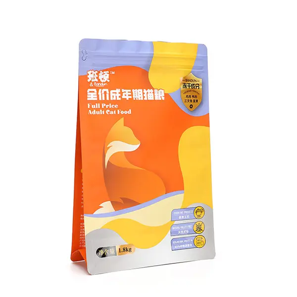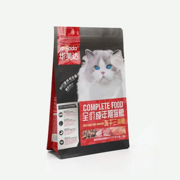 Large Flat Bottom Pet Food Packaging Plastic Pouch For Dog and Cat Food